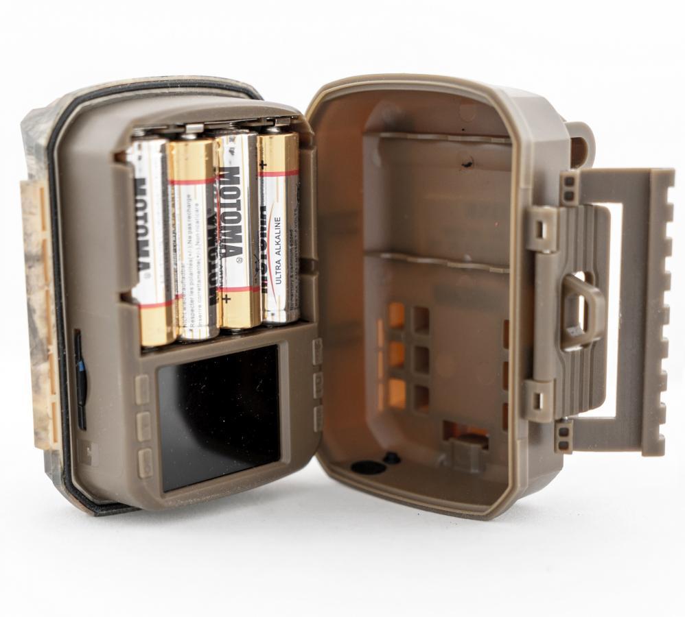 Fotopast OXE Gepard je napájena 4 ks AA baterií, které se umísťují do boxu nad displejem. Pro provoz fotopasti je možné použít klasické alkalické baterie (doporučujeme pouze v letním období) a lithiové baterie (doporučujeme pro provoz v zimě). Fotopast lze také nabíjet pomocí externího akumulátoru 6V/7Ah, který se s fotopastí propojí pomocí napájecího kabelu se svorkami. Nicméně spotřeba baterií u takto malé kompaktní fotopasti je velmi nízká a tak si běžný uživatel ve většině případů postačí s alkalickými bateriemi. Při teplotách, která klesají pod mínusové hodnoty i tak však doporučujeme použití lithiových baterií. Náročnějším uživatelům doporučujeme dokoupit externí akumulátor s napájecím kabelem.