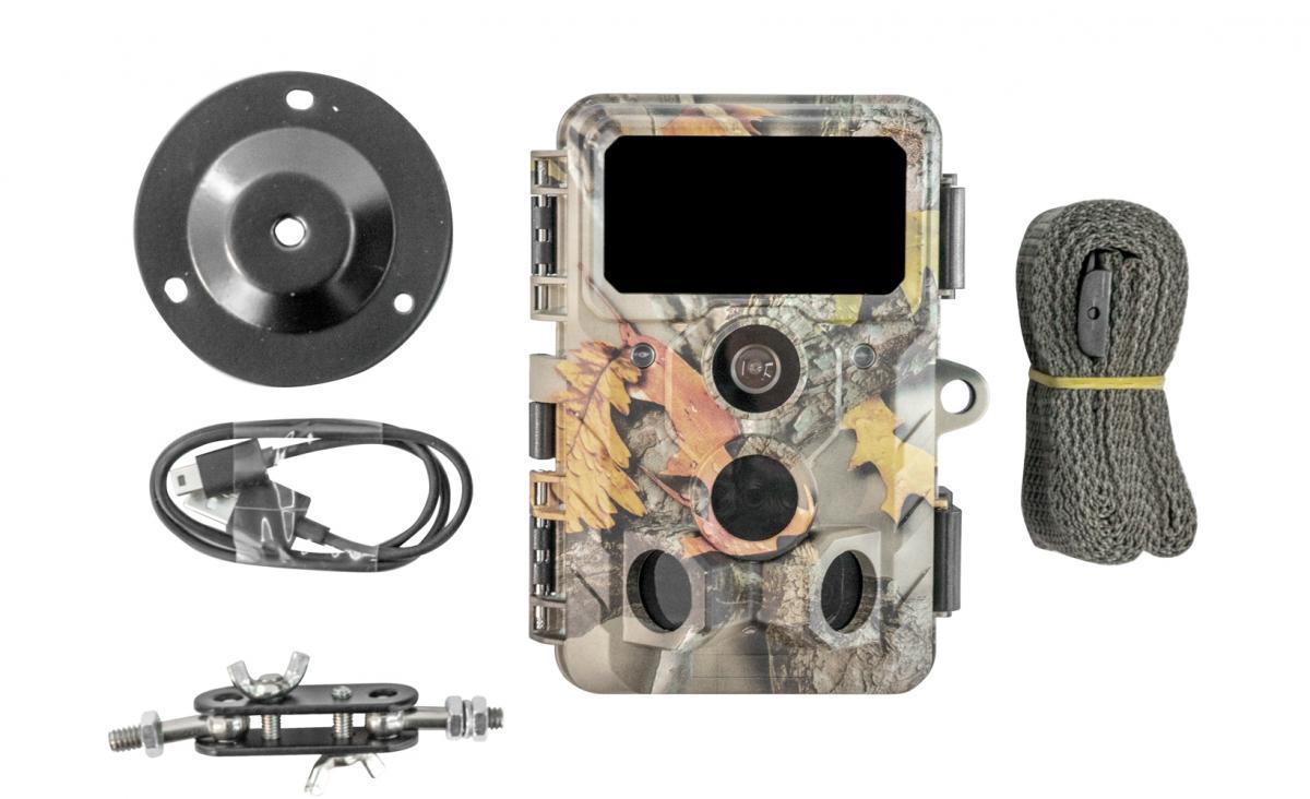 1x fotopast OXE WiFi lovec RD3019 1x USB kabel 1x montážní popruh 1x stativ na tripod 1x montážní deska 3x šrouby 1x 32GB SD karta 8x AA baterie