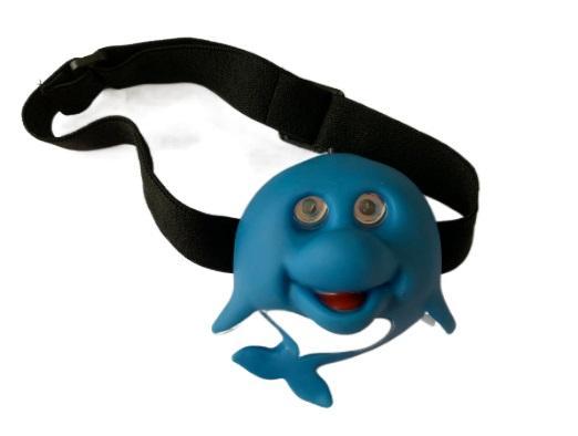 Dětská LED čelovka OXE s motivem delfína. Napájení čelové svítilny: 2xAAA.
