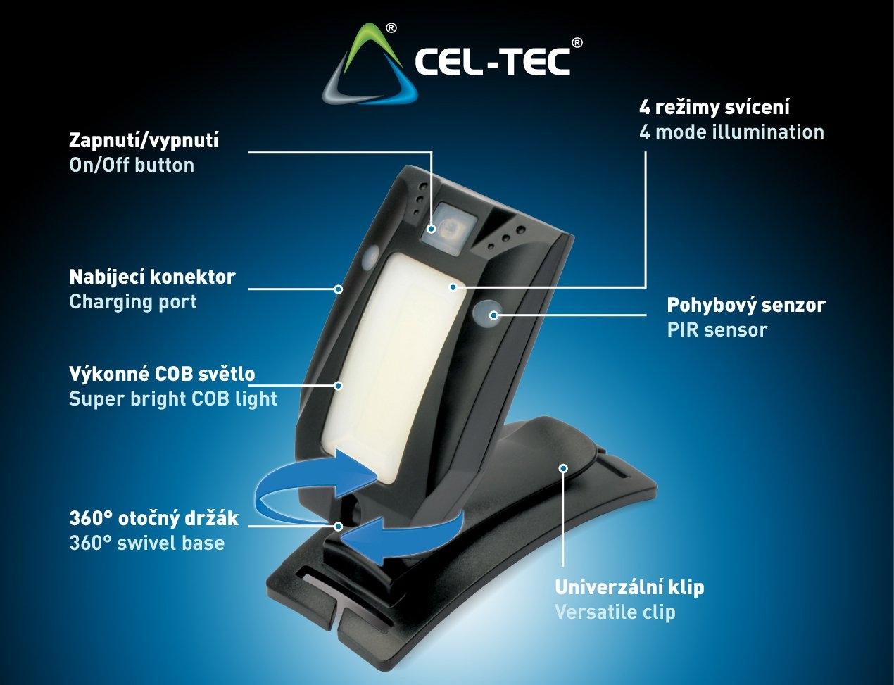 Multifunkční nabíjecí svítilna CEL-TEC HL170 COB Motion je profesionální výrobek s dlouhou životností a LED typu COB.