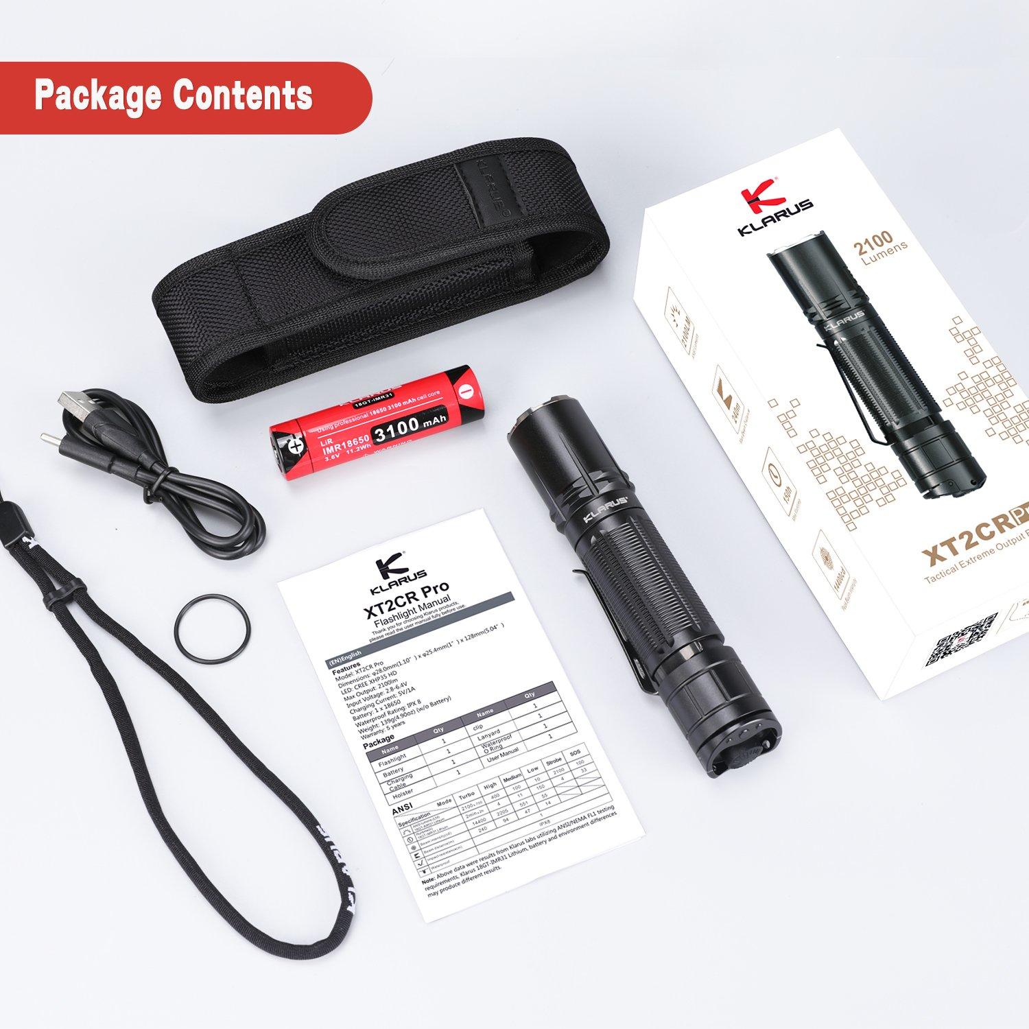 Vysoce výkonná outdoorová taktická svítilna Klarus XT2CR Pro vhodná také pro profesionální použití.