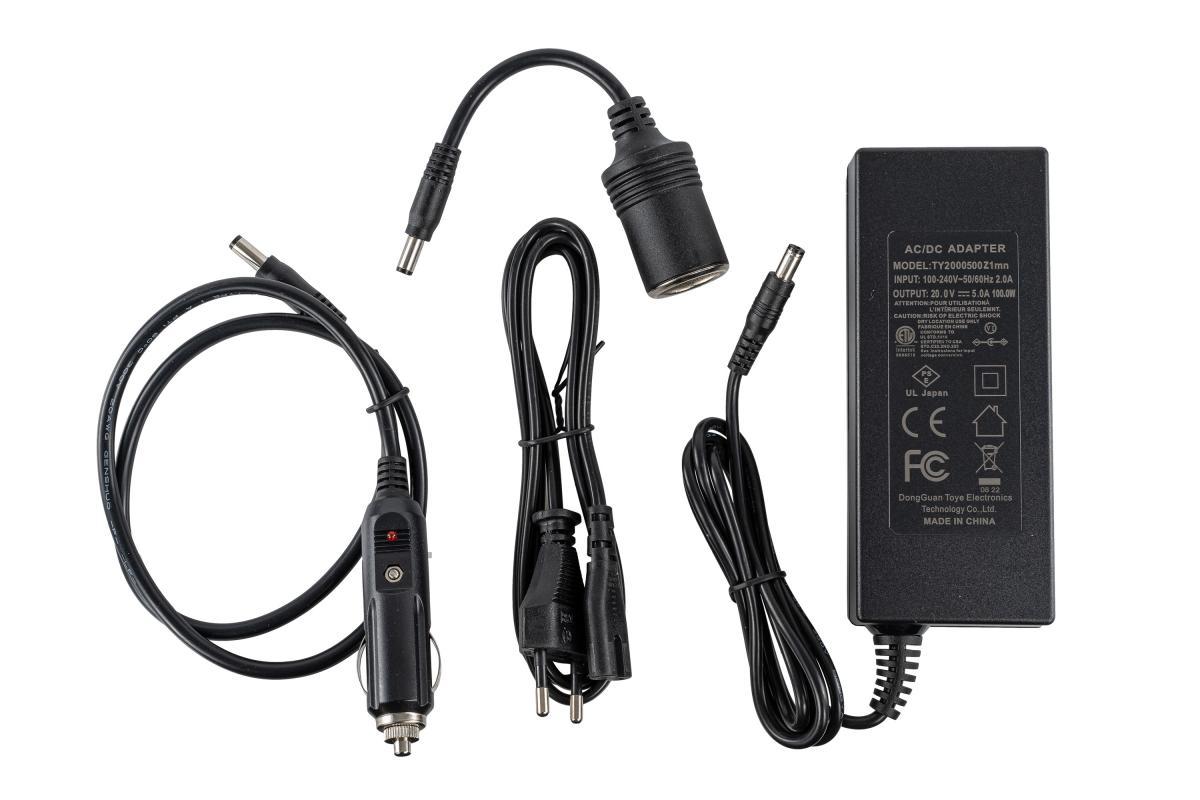 1x OXE Powerstation A501 1x AC napájecí zdroj do sítě 230V 1x CL autonabíječka 12V 1x Nabíjecí zásuvka do auta 1x Uživatelský manuál