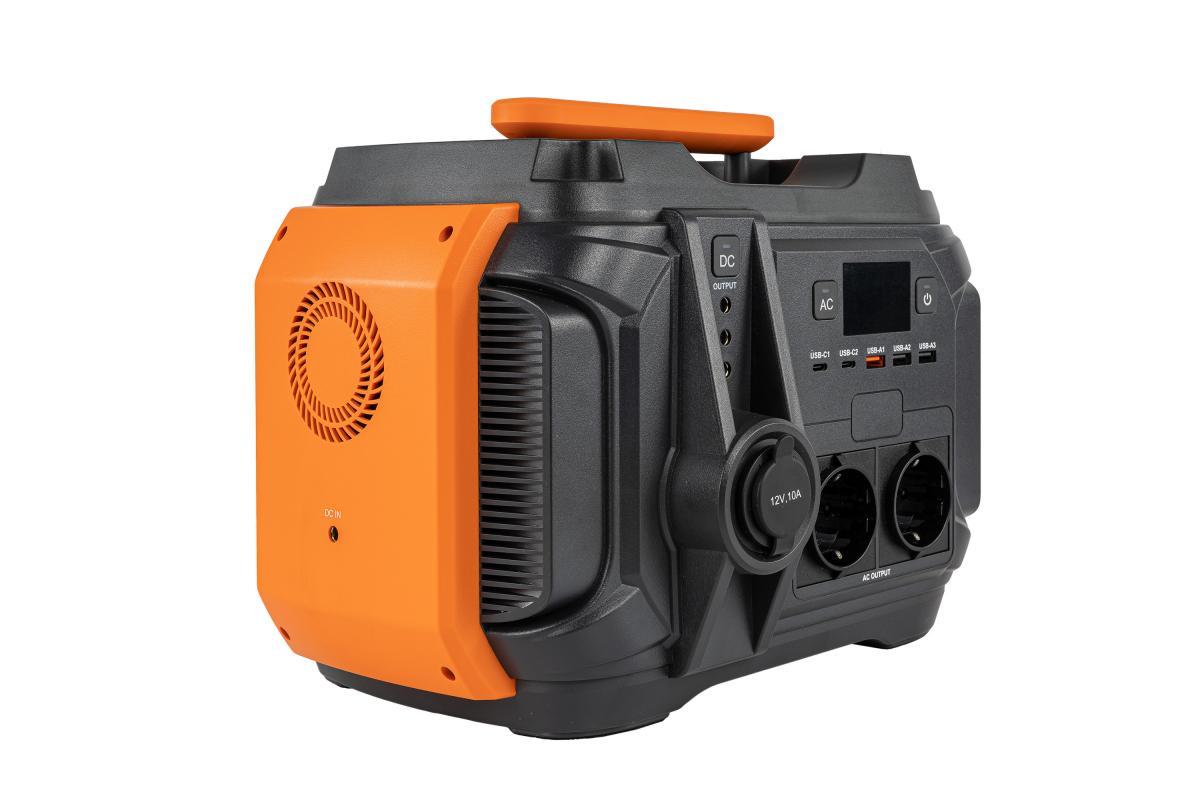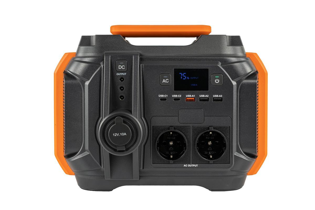 Na předním panelu elektrocentrály najdeme velké množství funkčních prvků. Nachází se zde tři tlačítka, která slouží pro zapnutí a vypnutí elektrocentrály a AC / DC portů. Mezi tlačítky je umístěn přehledný LCD displej pro zobrazení informací o nabíjení. Pod těmito prvky je umístěno pět USB portů (3x USB výstup, 2x USB Type-C výstup). Dále jsou na předním panelu umístěny DC výstupy 12V/10A a 2x AC výstup 230V, Na bocích produktu je vyjma ventilátoru umístěny i další port, a to 1x DC vstup. Na zadní straně produktu se nachází LED přísvit, který má režimy SOS, stroboskop a klasický přísvit. U LED přísvitu je i samostatné tlačítko pro jeho zapnutí / vypnutí.