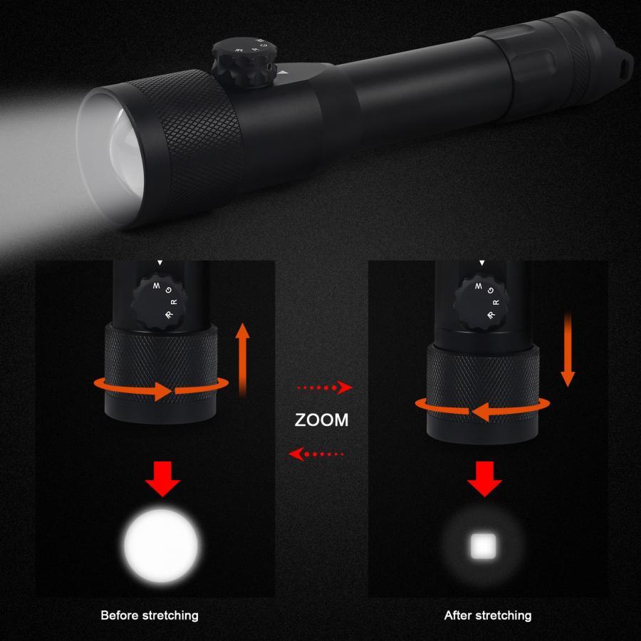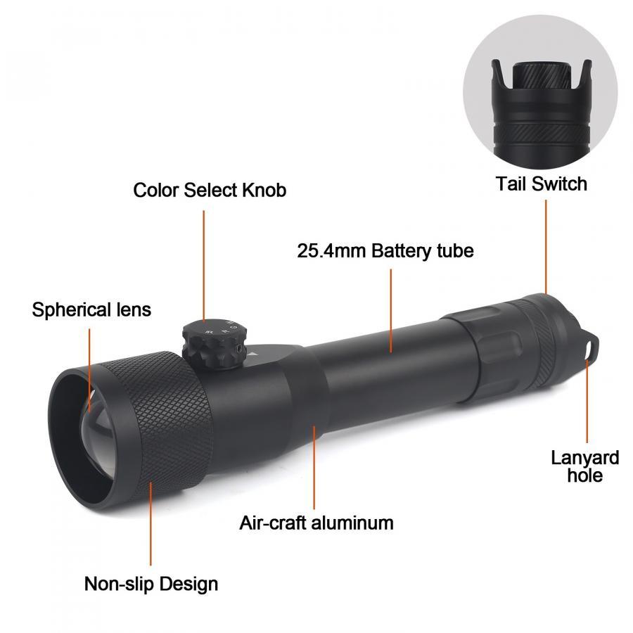 - 4 světelné režimy (bílý, zelený, červený, IR 940 nm)