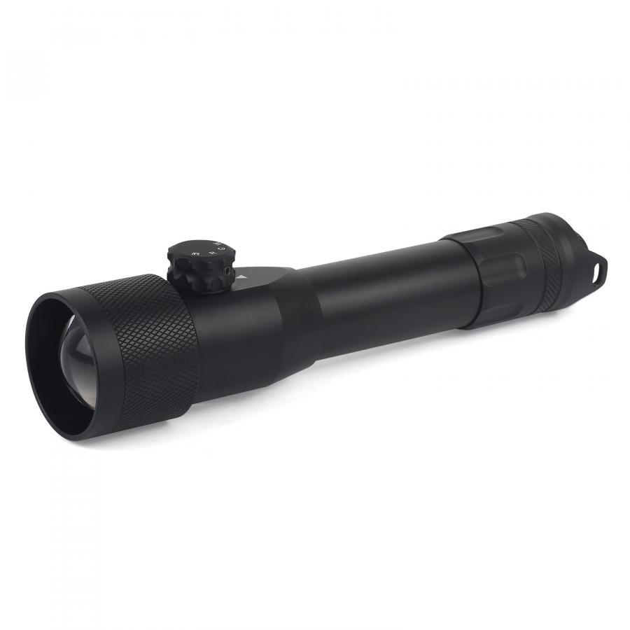 Obsahem balení je speciální objímka, díky níž můžete svítilnu snadno upevnit na zařízení s nočním přísvitem nebo na weaver lištu. Svítilna s objímkou slouží jako účinný doplněk pro prodloužení dosahu nočního vidění. Bez ohledu na to, zda jste lovec nebo pozorovatel přírody, tato funkce vám umožní identifikovat cíle až na vzdálenost 650 metrů. Přísvit na vlnové délce 940 nm je zcela neviditelný a umožňuje osvětlovat prostor bez odhalení.