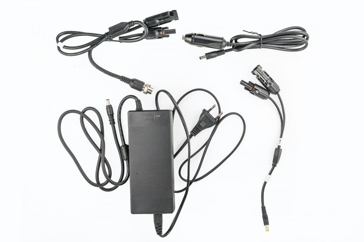 1x OXE SP100W - Solární panel 1x napájecí kabel (DC5521, Y adaptér)