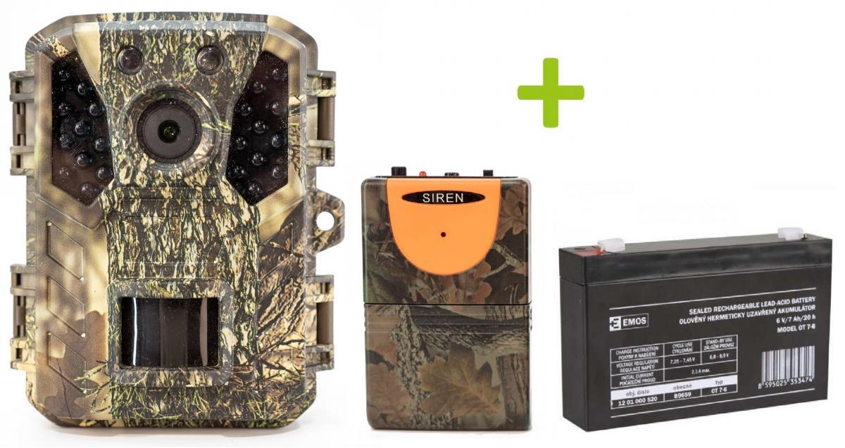 Cenově výhodný balíček je tvořen fotopastí OXE Gepard II, loveckým detektorem, externím olověným akumulátorem 6V/7Ah a napájecím kabelem. Lovecký detektor doplňuje fotopast o funkci alarmu. Provoz fotopasti je zajištěn prostřednictvím externího akumulátoru, který se s fotopastí propojí napájecím kabelem. Nákupem balíčku tedy ušetříte Vaše finanční prostředky oproti tomu, než kdybyste fotopast a externí akumulátor kupovali samostatně. Tento set ocení každý lovec!