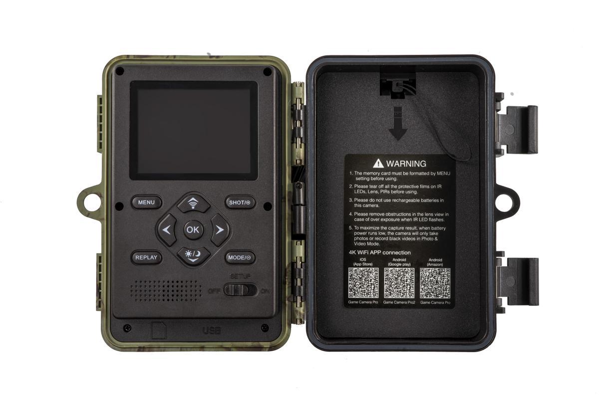 Nastavení a obsluha fotopasti je velmi jednoduchá, a to především díky kompletně českého menu. Fotopast lze ovládat pomocí funkčních tlačítek, které jsou umístěny okolo velkého 2,4" LCD displeje. Další možností, jak lze s fotopastí pracovat, je její propojení s mobilním telefonem, kde prostřednictvím mobilní aplikace můžete provádět nastavení fotopasti, pořizovat nebo prohlížet snímky, zobrazit stav nabití baterií aj.