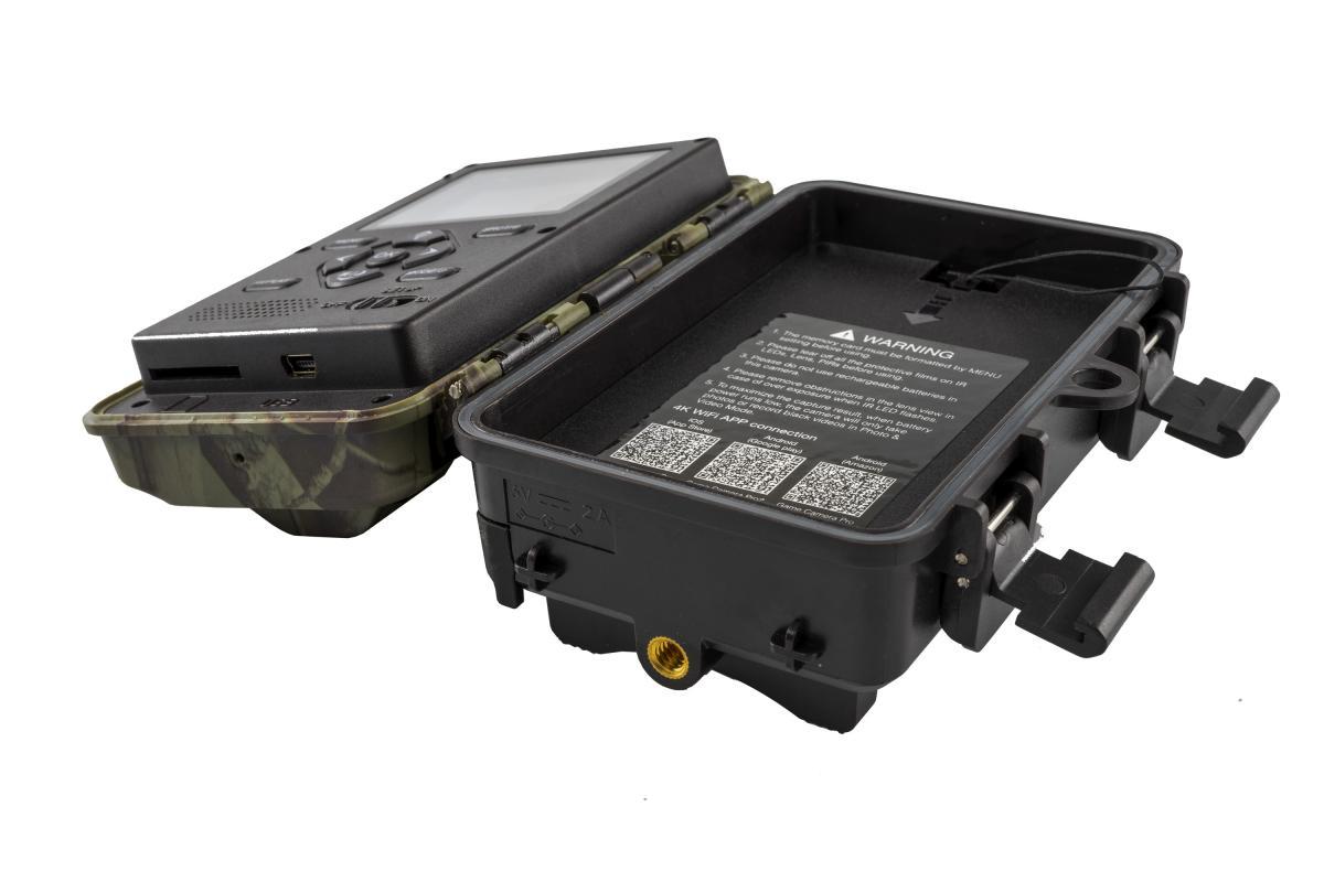 Denní čočka: nativní snímač SONY 13MP s vysokým rozlišením (F=2.9 mm, F/NO=3.0, FOV=80°, zkreslení: -1%) Noční čočka: senzor 200W (F=4.0 mm, F/NO=1.4, FOV=93°) Foto rozlišení (denní čočka): 48MP (9248x5200), 36MP (8000x4496), 24MP (6544x3680), 13MP (4832x2704), 8MP (3840x2160), 4MP (2704x1520), 2MP (1920x1088) Foto rozlišení (noční čočka): 4MP (2704x1520), 2MP (1920x1088), 1MP (1280x720) Sériové snímání: ano (1 - 10 snímků) Formát foto: JPEG Video rozlišení (denní čočka): 4K (3840x2160, 30fps); 2.7K (2704x1520, 30fps); 2K (2560x1440, 60fps); 1080P (1920x1080, 60fps/30fps); 720P (1280x720, 30fps); 480P (848x480, 30fps); 360P (640x368, 30fps) Video rozlišení (noční čočka): 1080P (1920x1080, 30fps); 720P (1280x720, 30fps); 480P (848x480, 30fps); 360P (640x368, 30fps) Formát video: MPEG-4 (H.264) Displej: 2.4" IPS 320x240 (RGB) TFT-LCD displej Účinnost: den 1m, noc 3m - 20m PIR úhel záběru: centrální senzor 60°, bočního senzor každý 30°, celková zóna úhlu senzoru 120° Rychlost odezvy: 0,3 s, před spuštěním 0,2 s PIR dosah: až 20 metrů PIR citlivost: nastavitelná (nízká / střední / vysoká) IR přísvit: přísvit s lehkým červeným probliknutím (850nm), dosvit až 20m WiFi: 2.4 ~ 2.5 GHz 802.11 b/g/n (až 150 Mbps), dosah až 15 m Bluetooth: 5.0 (2.4GHz ISM), dosah až 20 m Paměťová karta: SD/SDHC s max kapacitou 256GB Krytí: IP66 Napájení: 8x AA Externí napájení: 6V/7Ah (není součástí balení) Výdrž baterií v režimu standby: cca 6 měsíců při průměru 50 snímků za den (s 8 bateriemi, ovlivněno i venkovními podmínkami) Provozní teplota: -20°C ~ 60°C (skladovací teplota -30°C ~ 70°C) Provozní vlhkost: 5% ~ 90% Konektory: Mini USB 2.0, konektor pro napájení Rozměry: 135x103x75 mm