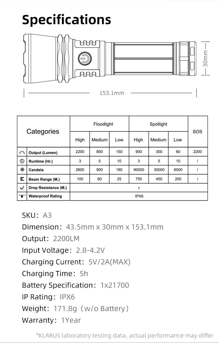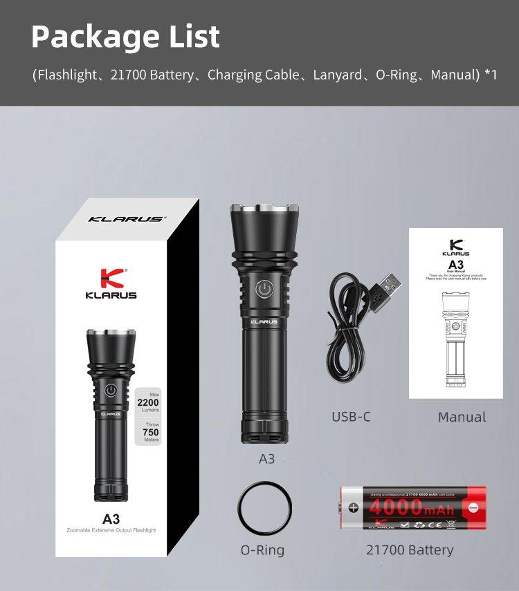Vysoko výkonné zoomovacie outdoorové svietidlo Klarus A3 s revolučným systémom ostrenia a extrémnym dosahom svetla.