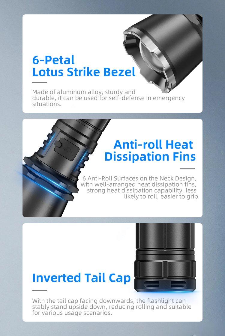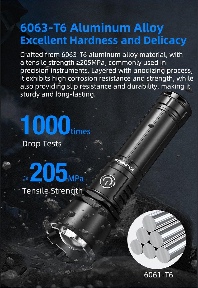 • Odolné tělo z leteckého hliníku 6063-T6 s voděodolným krytím IPX6